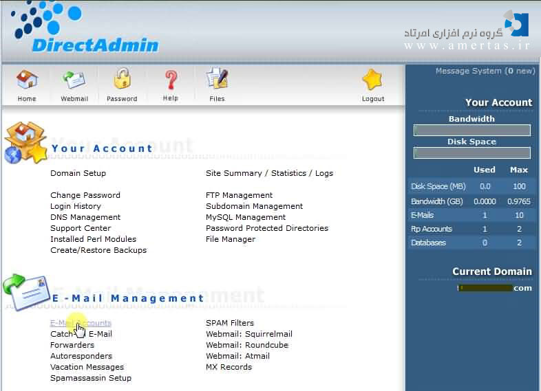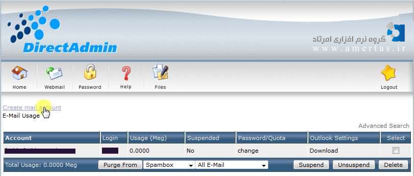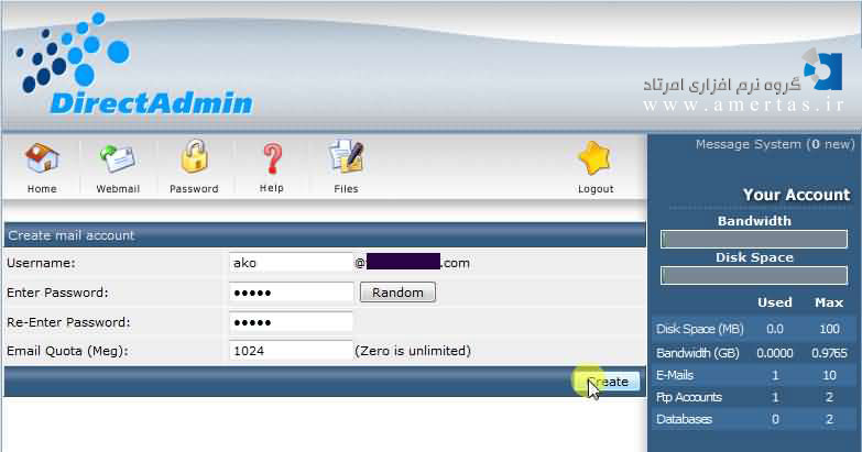 نکته: در صورتی که میزان فضا در نظر گرفته شود فضای نامحدود برای اکانت ایمیل در نظر گرفته خواهد شد ( تاسقف فضای سرویس میزبانی )
